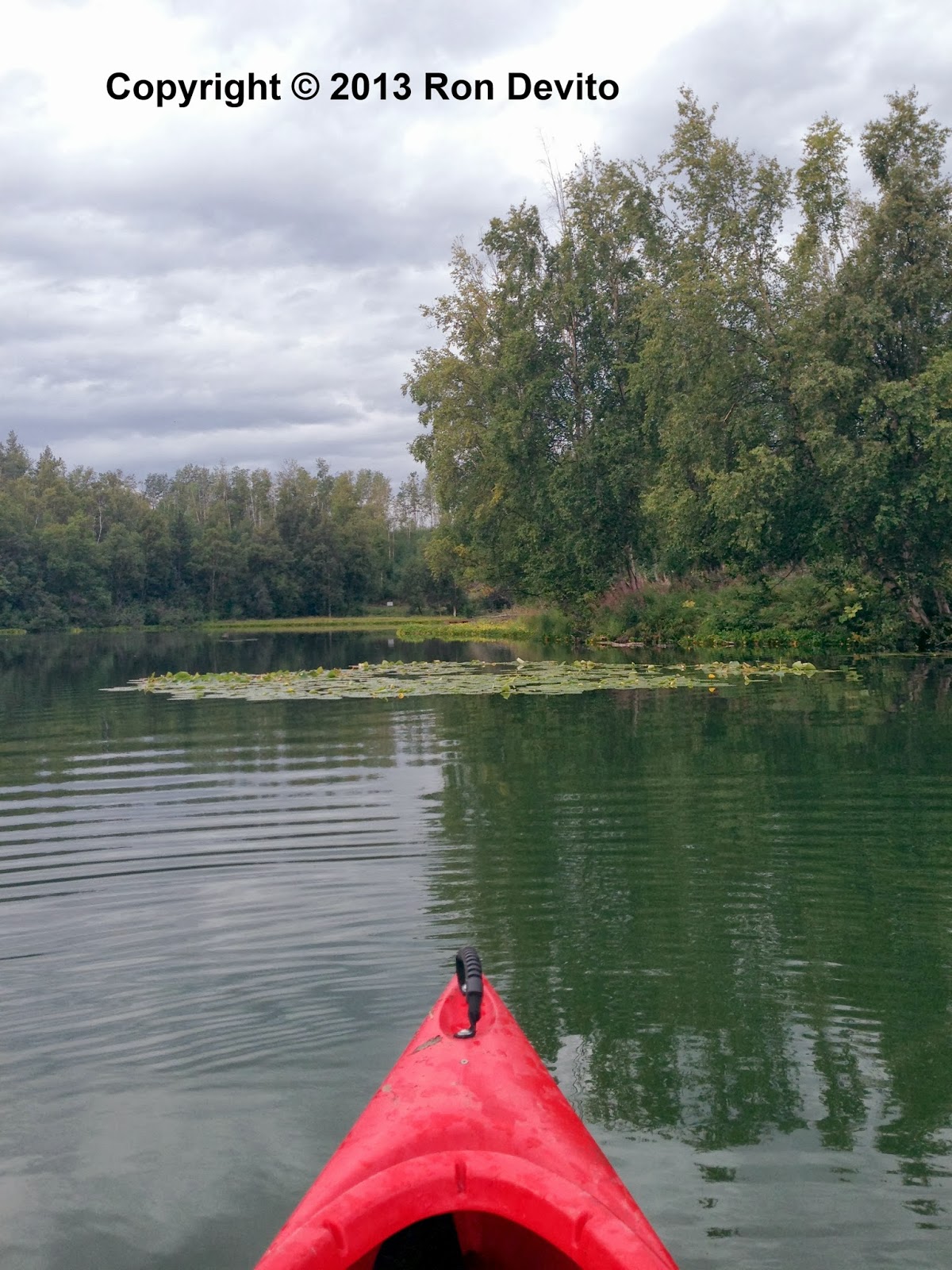 As I wrote in the Dorothy Page post, Finger Lake is one of four lakes that run between Palmer and Wasilla. It is possible to portage a canoe or kayak from one lake to the other, between any of the four. There are designated points to do this so that you’re not trespassing on private property or needlessly adding distance to your haulage. These boats weigh over 100 lbs, so one must be in at least decent shape to portage. To canoe all four lakes would take four to six hours and the camp host would meet you at your terminating lake and drive you back to your vehicle at the lake of origin. You could start out on Finger Lake, portage to Mud Lake, which runs into Cottonwood Lake, then portage to Wasilla Lake. The trip is reversible and I would discover later on that there was a canoe / kayak rental right at Lake Wasilla off the Palmer-Wasilla Highway.